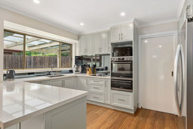 Set on a generous 897m² (approx.) allotment, the home comprises three spacious bedrooms with built-in robes, including a master with a stylishly renovated ensuite, complemented by an updated central bathroom. At the heart of the home, a meticulously renovated kitchen impresses with stone benchtops, an induction cooktop, double wall oven and integrated dishwasher, all flowing seamlessly through a functional and easy-to-navigate floor plan.