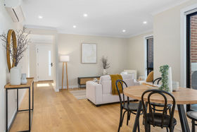 These elegantly designed townhouses are equipped with double glazing, solar hot water, electric reverse cycle ducted heating/cooling, 2.7m ceilings, a 6+ star energy rating and are all NBN connected.