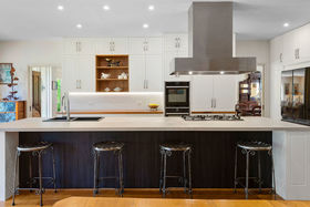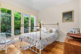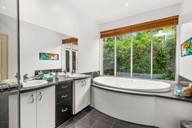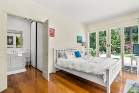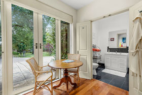 The home flows naturally from room to room, with French doors opening to leafy garden views and connecting indoor living to outdoor spaces. The layout balances comfort and functionality, offering four bedrooms, including a master with walk-in robe and sleek double-shower ensuite, plus two powder rooms and a central bathroom with spa.
