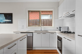 The home's light-filled interior features high ceilings, open-plan living including a contemporary kitchen with stainless-steel appliances, central island and ample storage. This spacious area is designed for relaxed everyday living that opens onto a decked alfresco area and private courtyard - an ideal spot for entertaining friends and family. There are three bedrooms including the master with walk-in robe and ensuite, and there are built-in robes in the other two. A central bathroom includes a bath and shower while extras such as a double lock-up garage, ducted heating and cooling throughout as well as split-system heating and cooling in the family area, and a European-style laundry, add to the appeal.