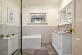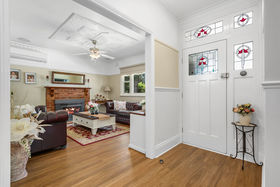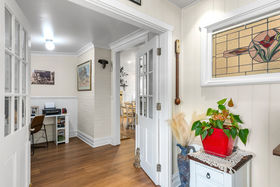 Inside, the home retains its charm with ornate ceilings, hardwood doors, stained glass windows and classic French doors. The main sitting room features vaulted ceilings, and two separate living areas provide flexibility for families, down-sizers or those working from home.